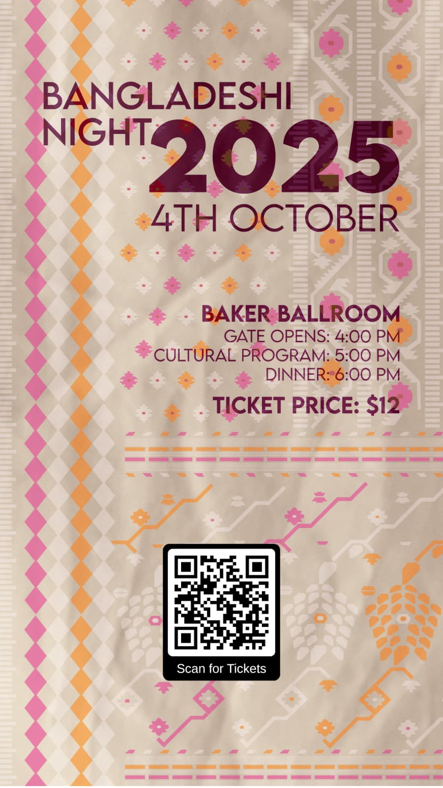Hope you are keeping well. This is an invitation to the Bangladeshi Night from all of us Bengali students and the community. Please join us with your family, friends, and colleagues in the Baker Ballroom for an evening of color, music, dance, and delicious food celebrating Bangladeshi culture.
